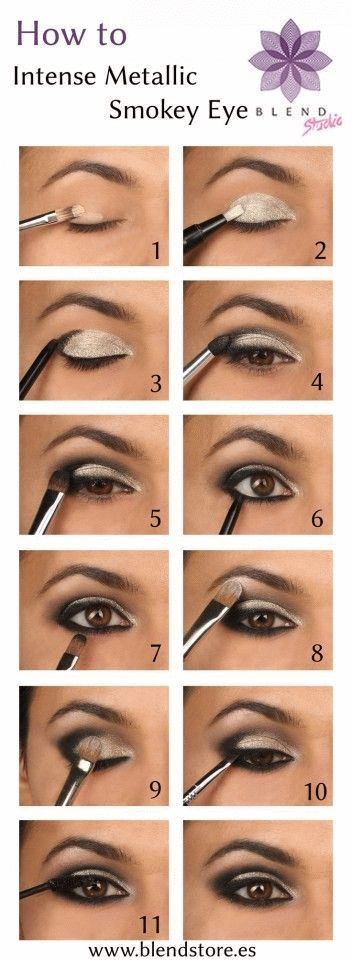The metallic eye makeup is effortless fashionable. Women will look quite sophisticated with this chic smoky eye makeup. This makeup idea looks better on mature women.