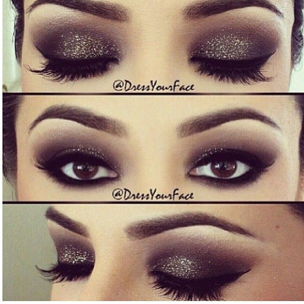 Dark somky eyes are quite mysterious while the glitters make it more fashionable and suitable for holidays.