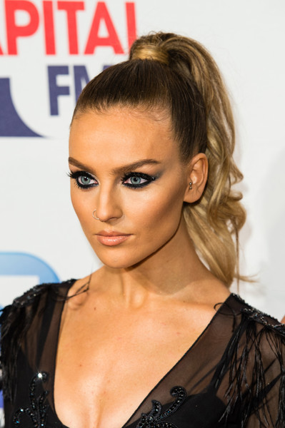 For a more active and spirited look, you can learn from Perrie Edward and do a tight high ponytail hairstyle. Plus, the long curly pony add more movement to the final look. It’s great for all occasions and outfits.