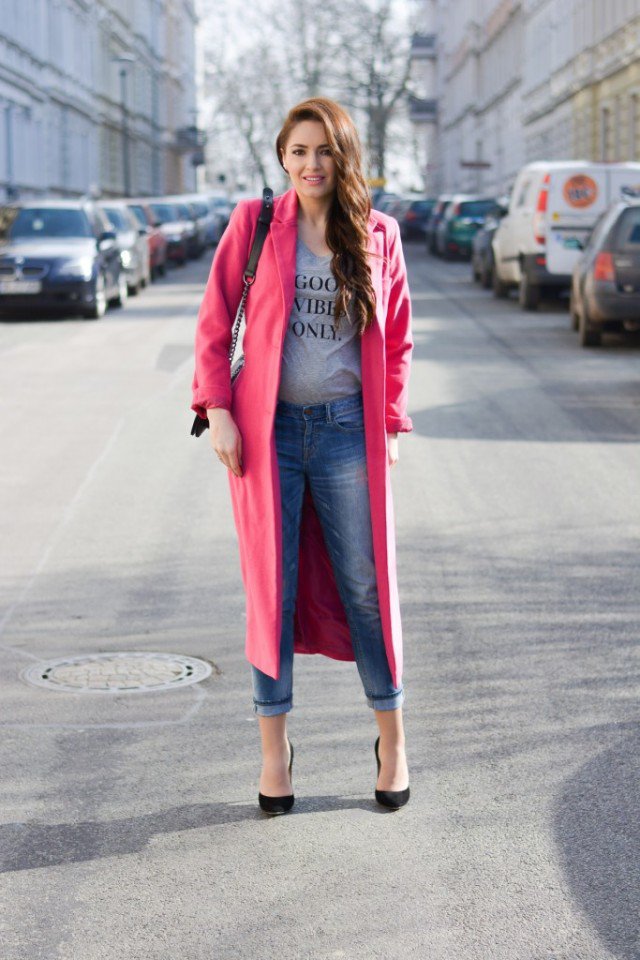 For a more lively look, you can put on a long coat in a brighter color. Every fashionista should have a colored long coat, for it will really make you look even more fashionable.