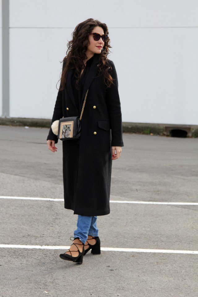 Stylish Black Long Coat Outfit Idea