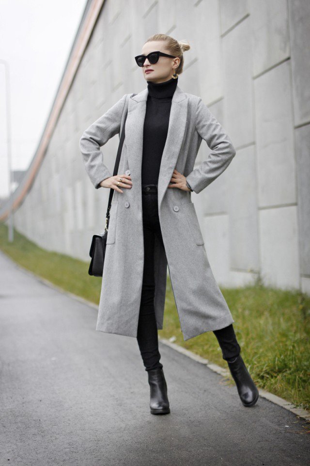 Fashionable Grey Long Coat Outfit Idea
