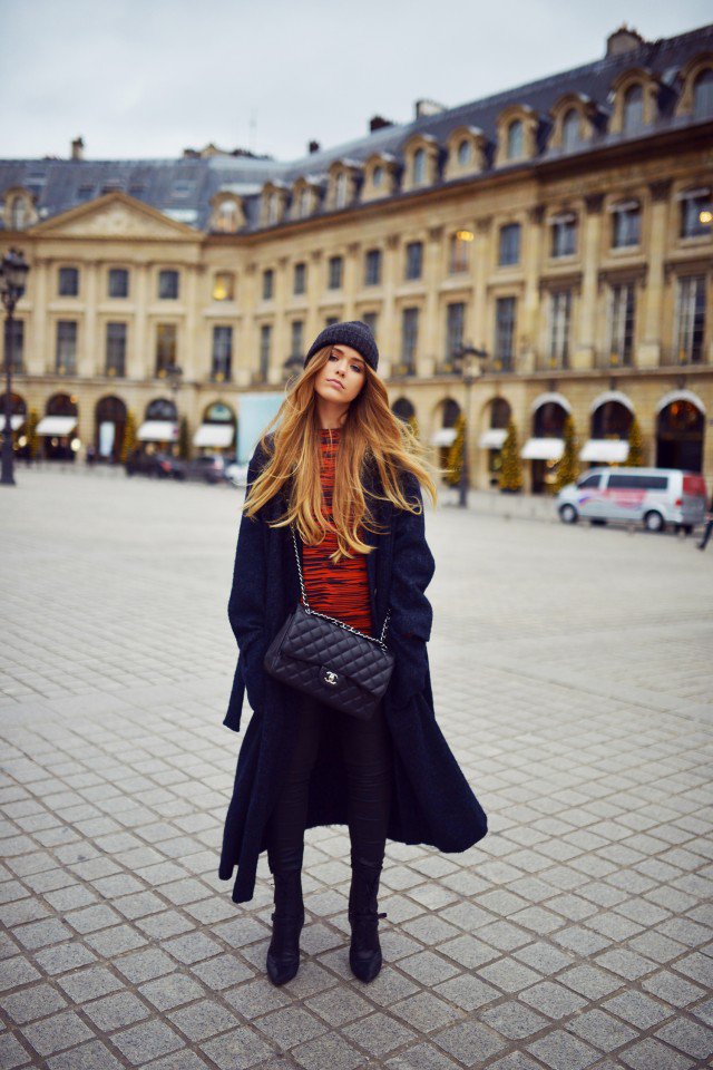 This picture tells us the long coat is a versatile piece to get matched. You can pair it with leather jeans and pumps for work, you can pair it with a hat for outdoor activities and you can also pair it with jeans and sports shoes for a semi-formal and casual occasions.