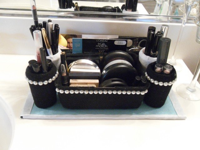 Fashionable Pearl Embellished Makeup Organizer/via www.divalocks10.com