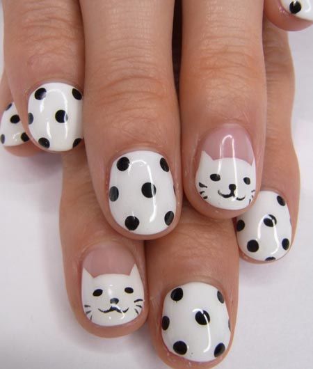 Cats and Dots Nail Design for Short Nails