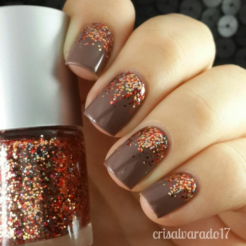 Mature women can try this coffee nail design. It’s quite stylish very the brownish glitters. In addition, this is a very simple idea to try and you can replace the coffee nail polish with nail polish in any other colors you like.