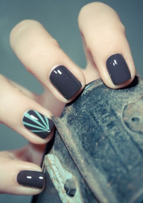 Perhaps, the most characteristic and easiest nails look the best on short nails. As is shown in this picture, this simple design looks quite edgy chic just with a black taper on each nail. Don’t you think it’s quite easy yet very chic?