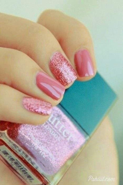 Here is another way to rock the shimmering pink nails. It’s quite sweet with the fashion attitude. Practice it if you like this idfea.