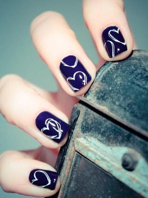 The navy blue background is elegant while the while casual hearts make this nail look more youthful and full of life. Therefore, both mature and younger women are welcome to try this pretty short nail design.