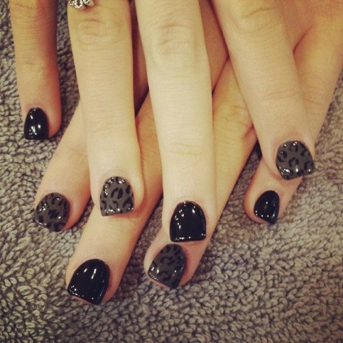 You don’t have to be scantily clad for a sexy look. Sometimes, a simple detail is enough to show your sexy attitude. For example, this black and grey leopard printed nail design will add a lot of feminine attraction to your overall look.