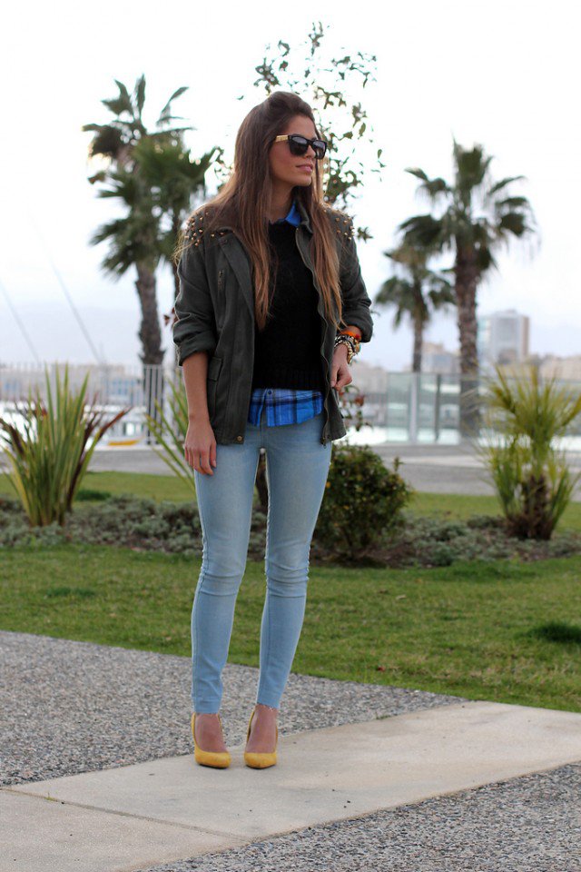 Tartan blouse and jeans are the most popular preppy style combination. It’s great whether for work or non-work days. A pair of bright colored pumps will upgrade the look to b more fashionable level.
