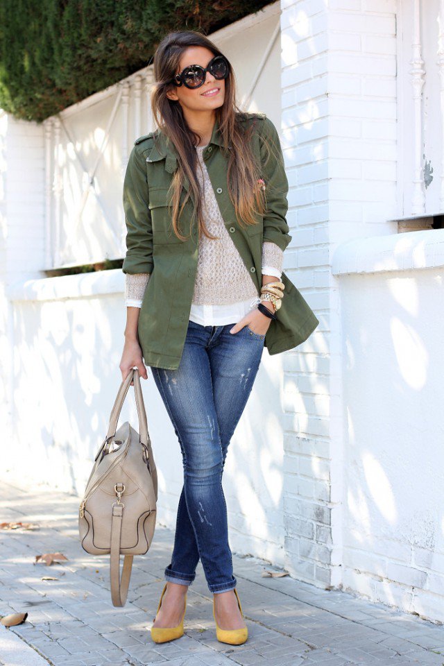 Jeans with Green Jacket via seamsforadesire.com
