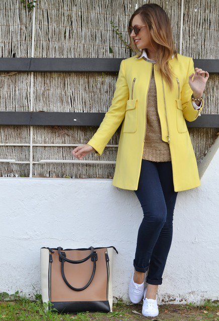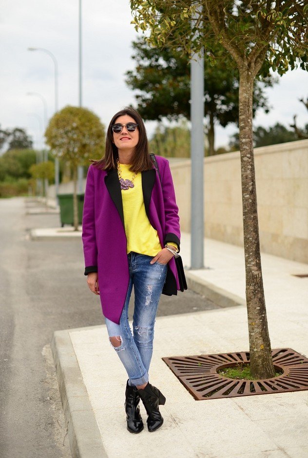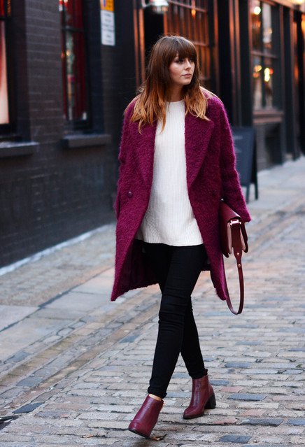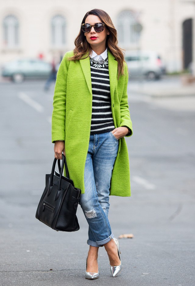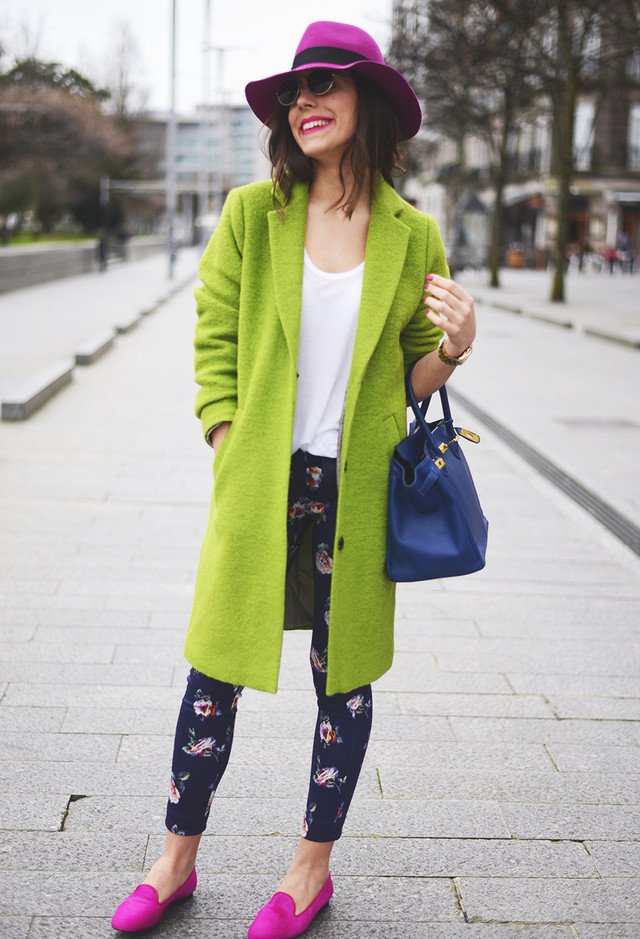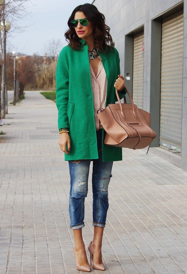 There are really a lot of choices for you. Just put away your grey or black winter coats and have a try with the colored ones. If you want to look adorable, try the baby pink or blue ones. If you want to be chic, try the olive green ones. You can match them with a simple outfit inside. Or you can go for an edgy-chic look. For example, you can match your green coat with a purple hat, which will bring out powerful visual impact. Now, take a look at the chic colored outfit ideas below and get some stunning ideas. Enjoy!