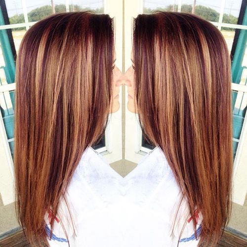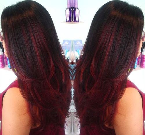 Add some burgundy highlights to your brunette hair and you will become more captivating.