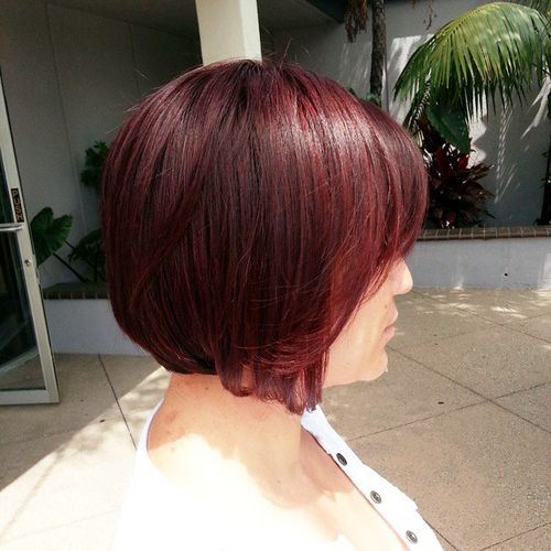 Bob hairstyles are chic and cute. They can look totally different as you dye them into different colors. This bright aubun color just make it super cool.