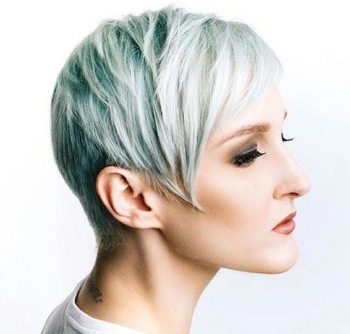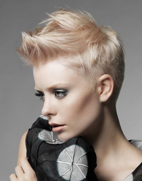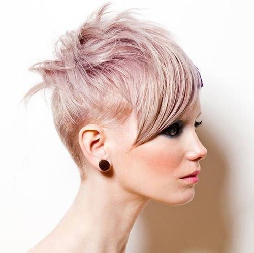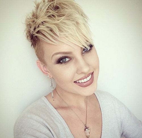 The blonde pixie haircut is edgy chic with the shaved sides. Besides, the long fringe can frame an over broad forehead.