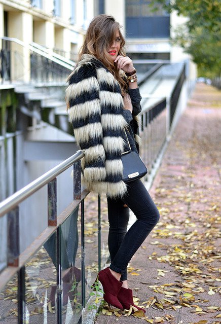 The fur coats add texture and luxurious vibes to your winter look. They keep you warm and fashionable at the same time. No matter you choose the black fur coats, the white ones or the stripes ones, the final look will all be eye-catching.