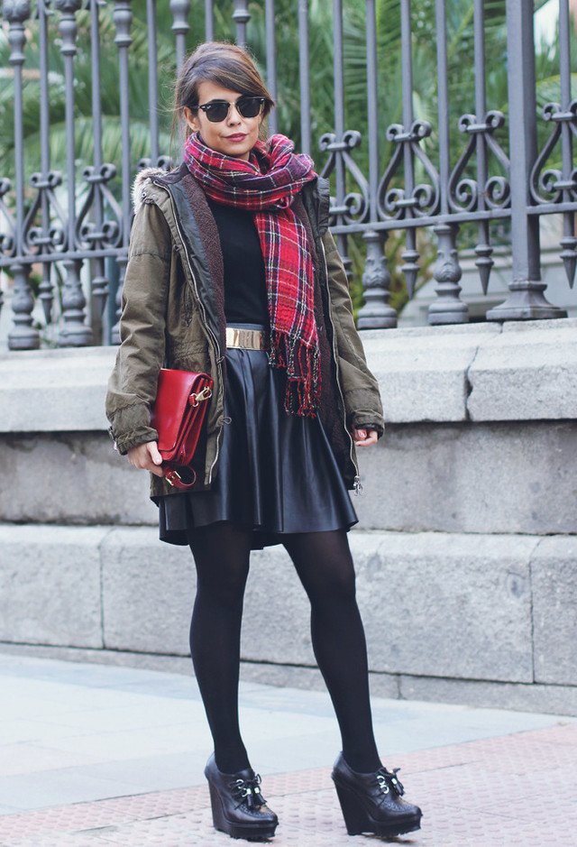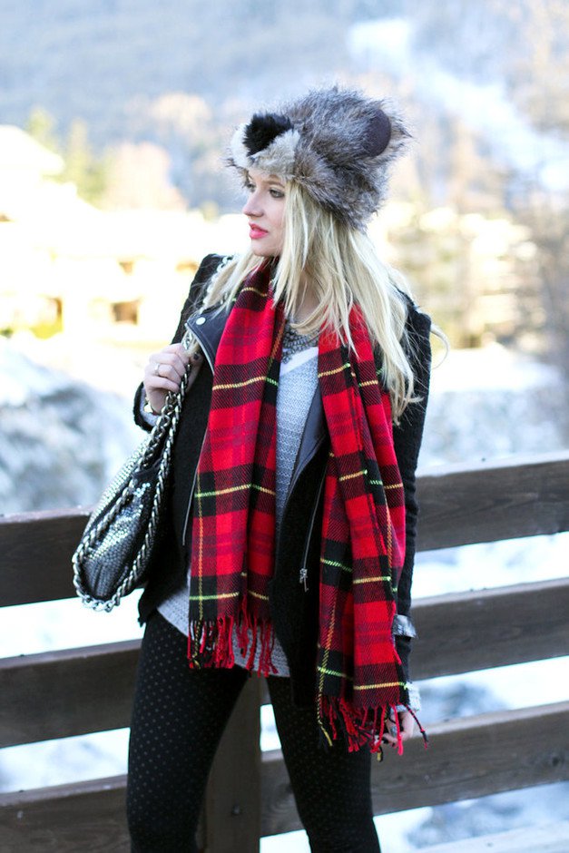 If you like wearing a scarf during the cold days, just add a tartan scarf to your winter wardrobe. It can go well with any outfits and the red tartan scarf works well to brighten up your winter look.