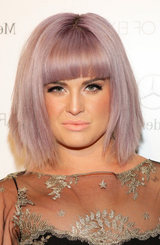 Kelly Osbourne Haircut: Layered Medium Light Purple Bob Haircut with Blunt Bangs /Getty images