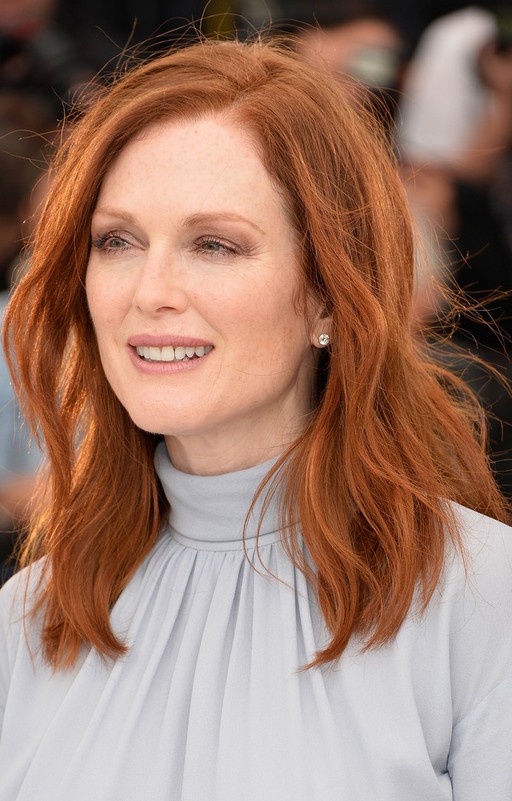 Julianne Moore Medium Red Wavy Hairstyle for Women Over 50