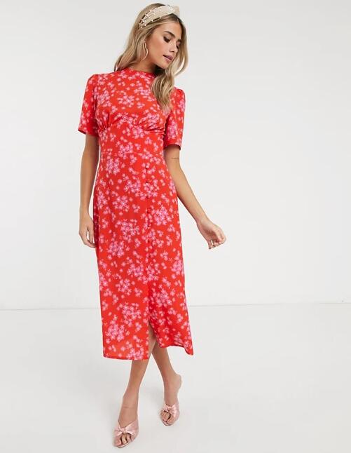 If you’re planning for a glamourous evening date, then grab a midi with a red and pink theme. It will go well with your purpose. Try to look for statement sleeves dresses as they are trending with florals. To complete the look, plug in your matching heels and pose for your day.