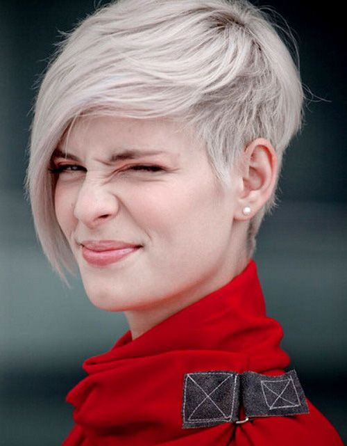 For rounder faces, this short haircut will work for you. The long fringe covers half of the face and it will add more mysterious vibes to your look. If you copy the ash blonde hair color, then you will be as cool as this girl.