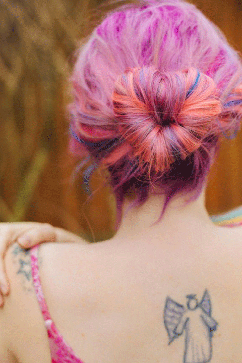 To get this chic heart shaped hairstyle, you need to make use of the hair clip. It will help you get this shape more easily. The colorful hair glam up the simple hairdo and add more romantic touch to this cute hairstyle. If you have the colored hair, just go for this lovely hairstyle.