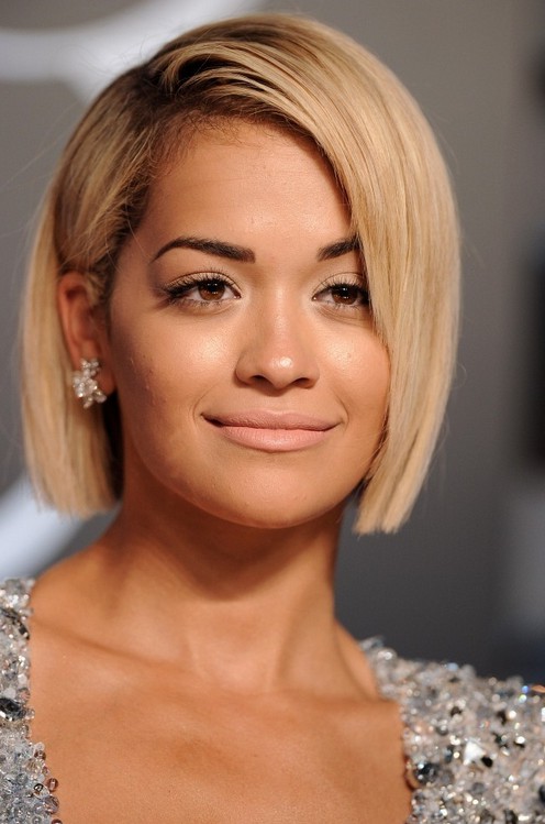Rita Ora Bob Hairstyle: Chic Short Haircut for Round Face Shapes /Getty images