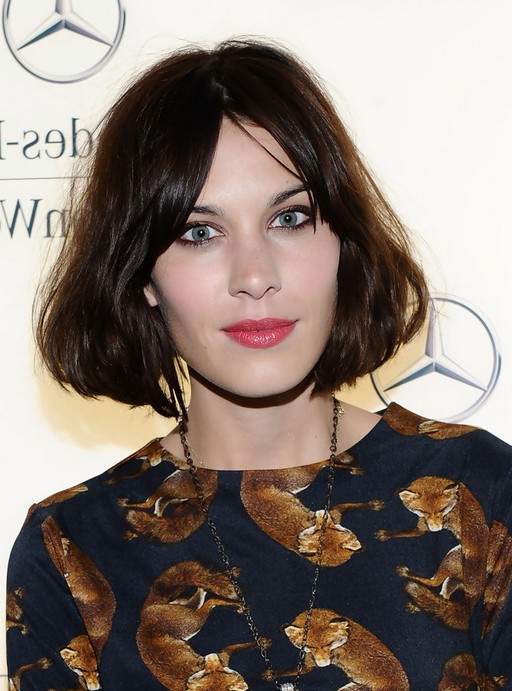 Alexa Chung Short Dark Brown Bob Hairstyle with Bangs /Getty images