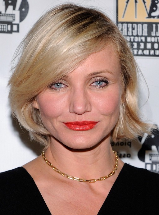 Cameron Diaz Short Bob Hairstyle with Side Swept Bangs /Getty images