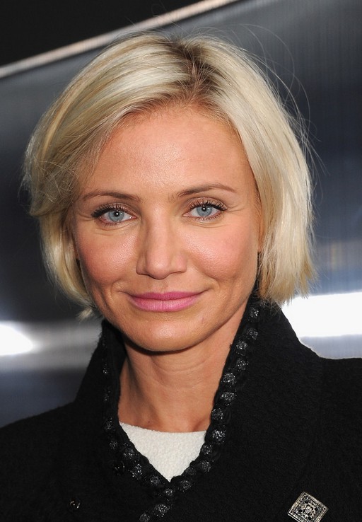Cameron Diaz Short Platinum Blonde Bob Hairstyle with Bangs /Getty images