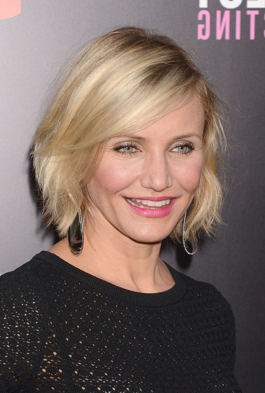 Cameron Diaz Casual Textured Platinum Blonde Bob Hairstyle /Getty images