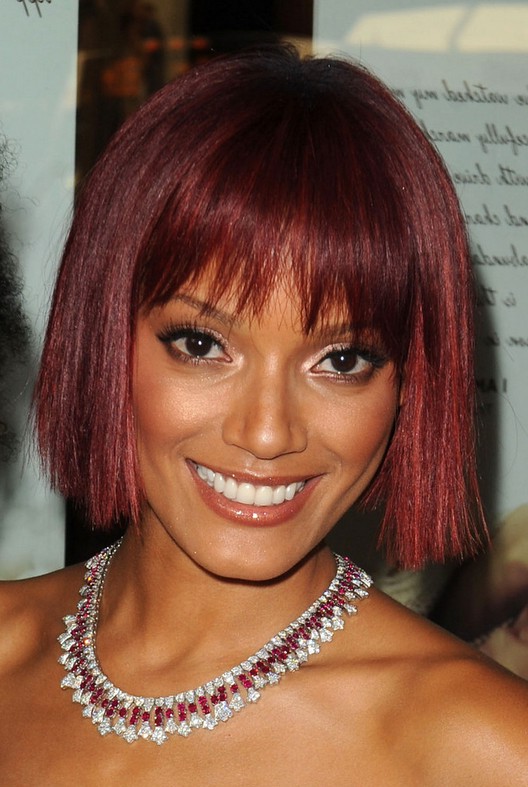 Celebrity Selita Ebanks Red Blunt Bob Hairstyle with Blunt Bangs /Getty images