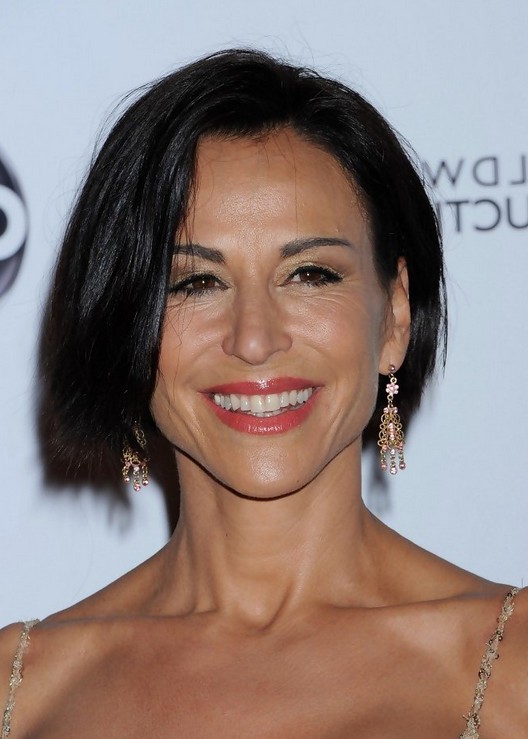 Malikha Mallette Black Bob Hairstyle with Side Swept Bangs /Getty images