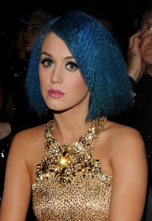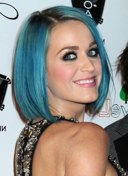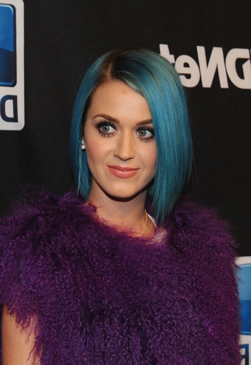 Katy Perry Short Straight Angled Blue Bob Hairstyle /Getty images