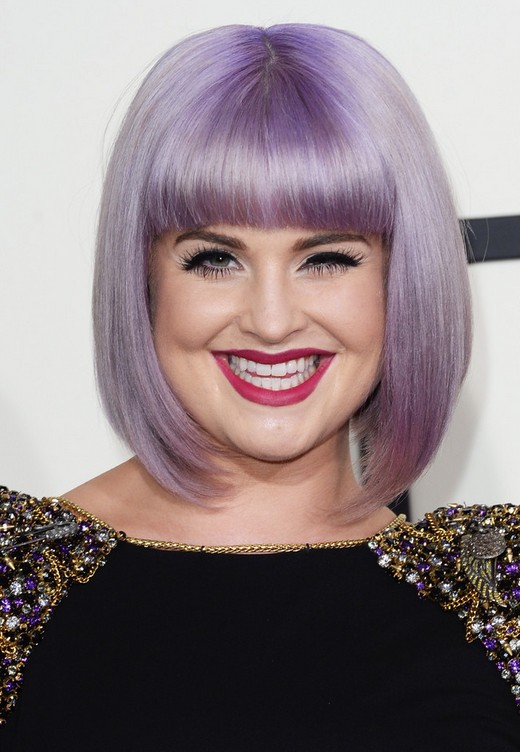 Kelly Osbourne Short Purple Bob Hairstyle with Blunt Bangs /Getty images