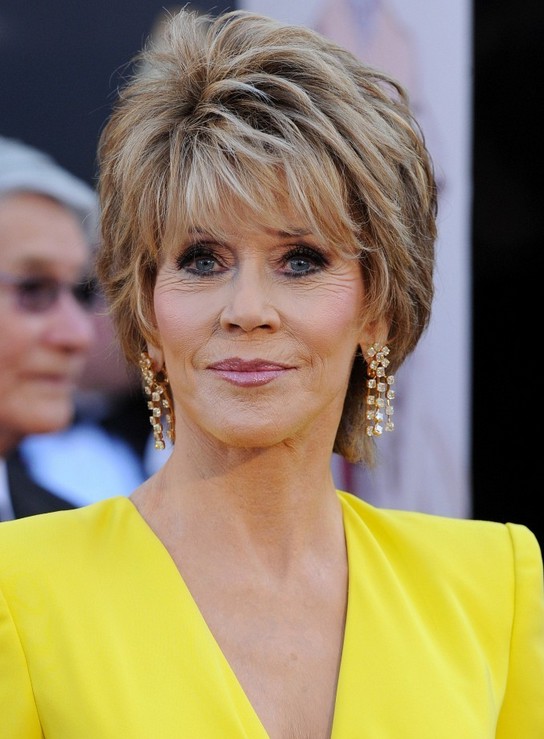 Jane Fonda Short Layered Razor Hairstyle for Women Over 60 /Getty images