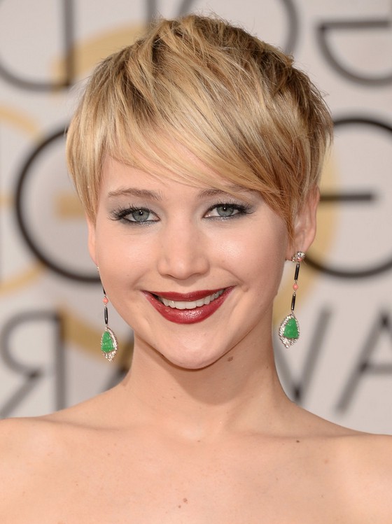 Jennifer Lawrence Haircuts: Short Layered Razor Cut with Bangs /Getty images