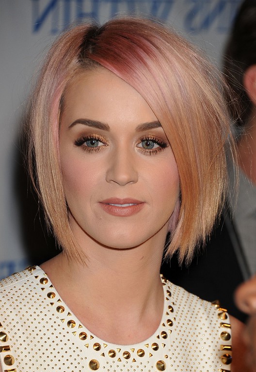 Katy Perry Hairstyles: Layered Short Straight Pink Razor Cut /Getty images