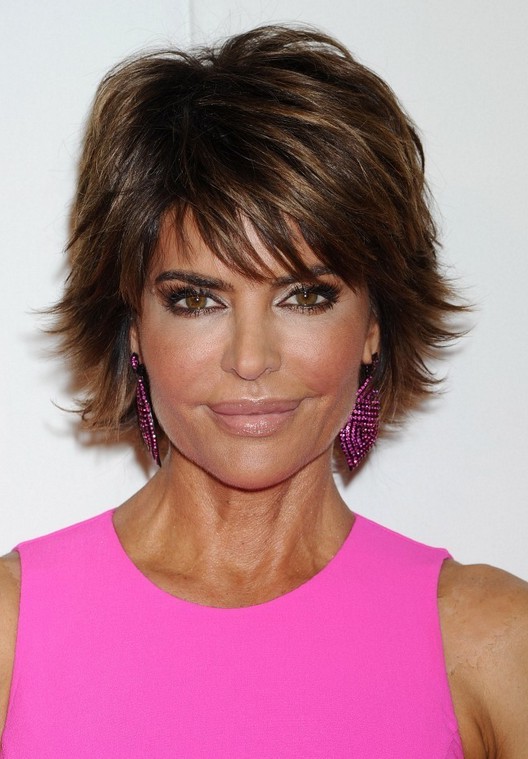 Lisa Rinna Hairstyles: Short Layered Razor Haircut with Bangs for Women /Getty images