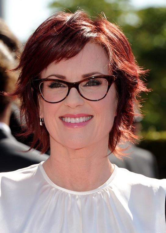 Megan Mullally Hairstyles: Short Layered Red Razor Haircut for Fall /Getty images