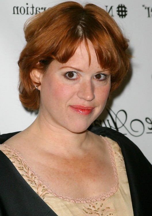 Molly Ringwald Hairstyles: Short Layered Red Razor Cut with Bangs /Getty images