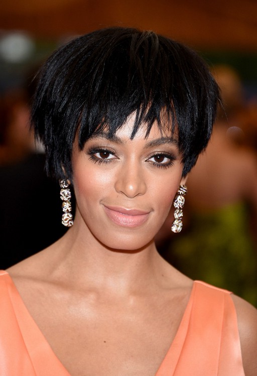Solange Knowles Hairstyles: Layered Black Razor Cut for Black Women /Getty images