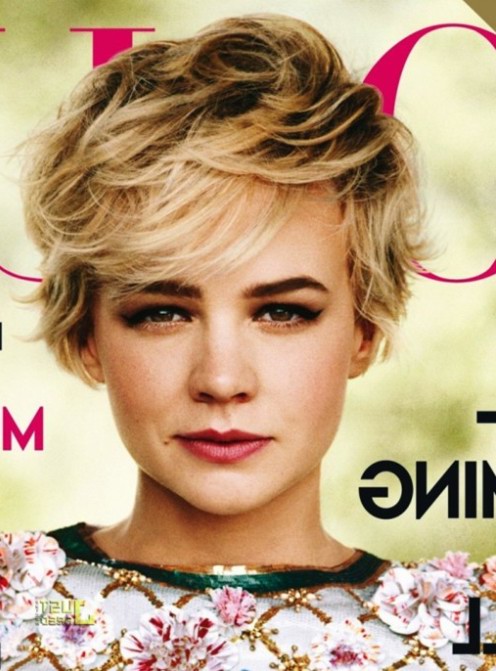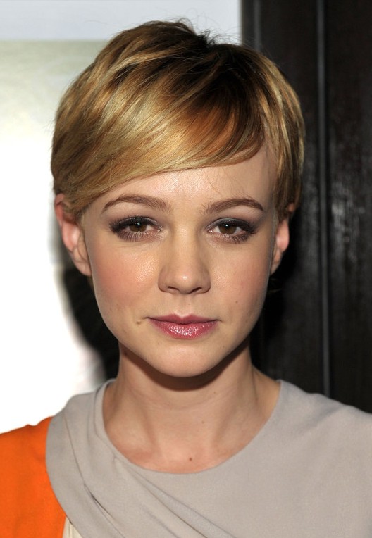 Carey Mulligan Cute Short Pixie Haircut with Side Swept Bangs /Getty images