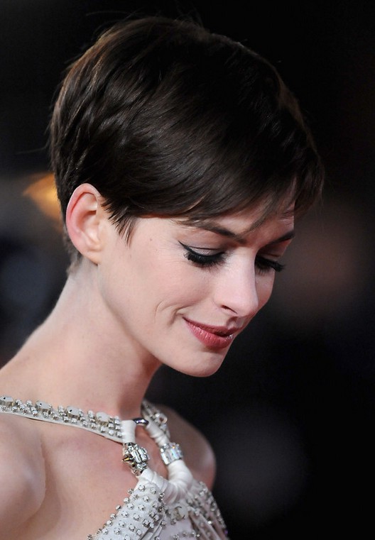 Side View of Anne Hathaway Short Pixie Haircut /Getty images