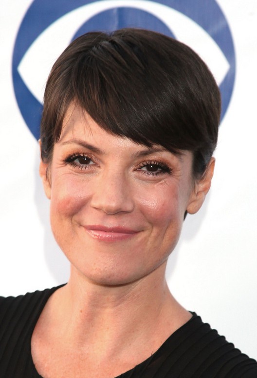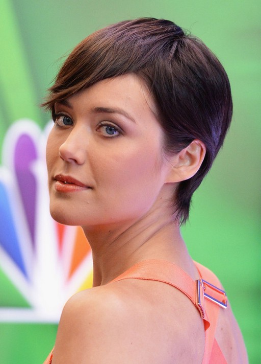 Side View of Megan Boone Short Pixie Haircut with Bangs /Getty images