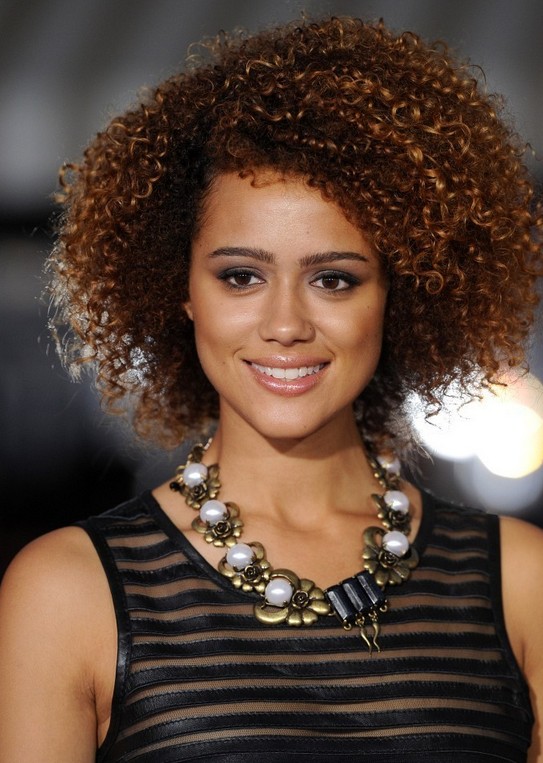 Nathalie Emmanuel Naturally Curly Hairstyle for Short Hair /Getty images