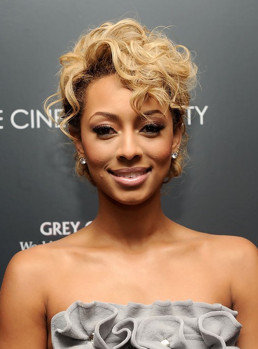 Keri Hilson Trendy Short Blonde Curly Hairstyle with Curly Bangs /Getty images