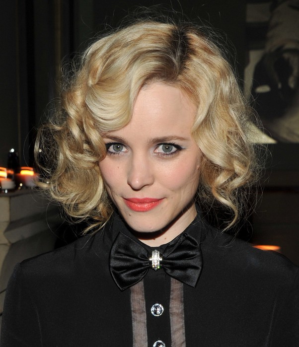 Rachel McAdams Short Blonde Curly Hairstyle with Bangs