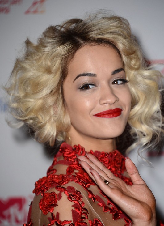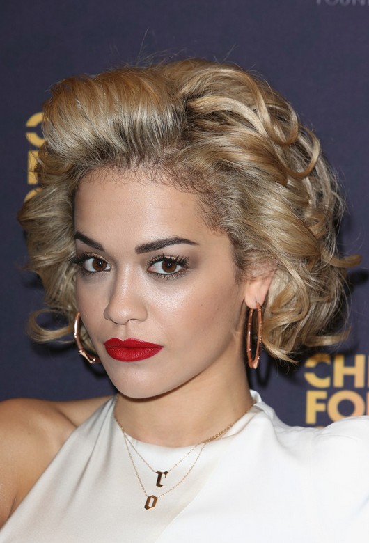 Rita Ora Short Curly Hair Style with Layers /Getty images